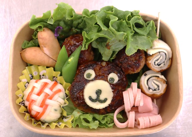 クマさんハンバーグをメインに、4種類のかわいいおかずと2種のおにぎりを作りました🍱