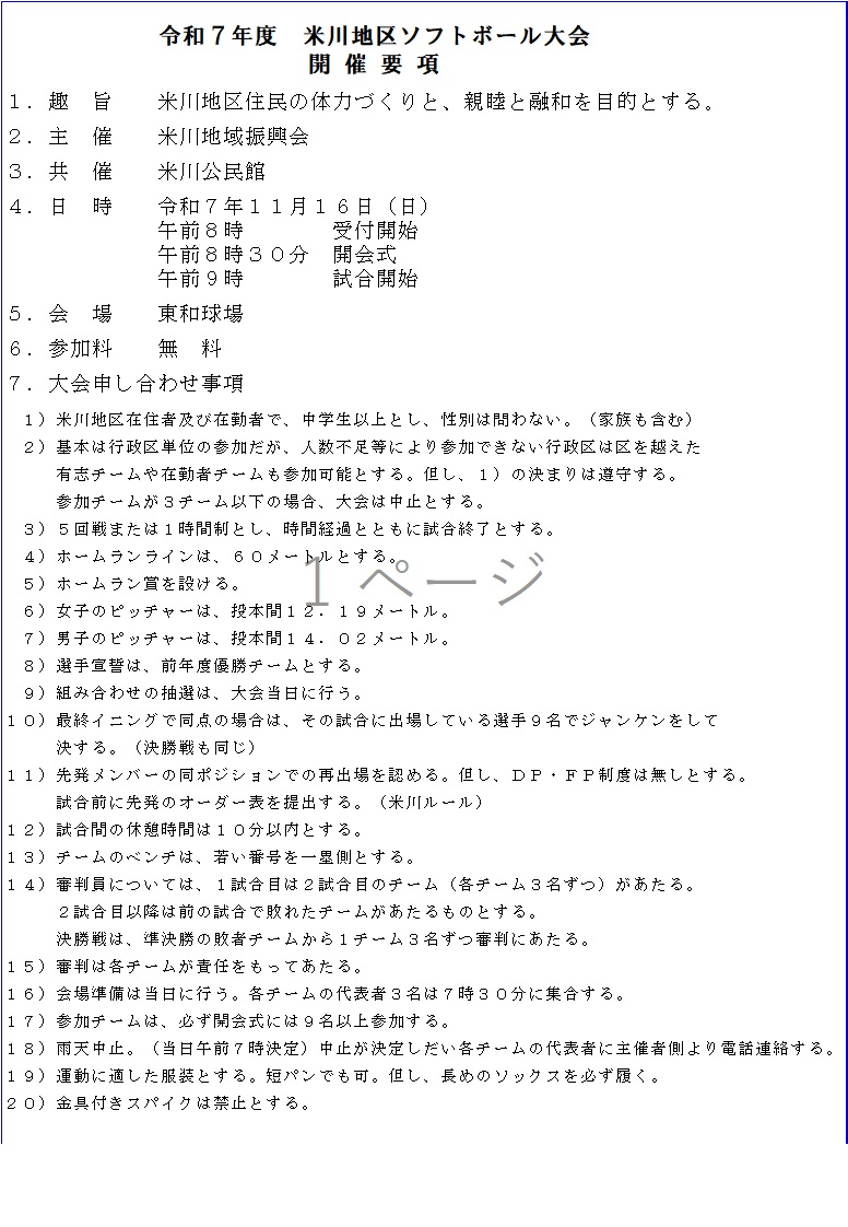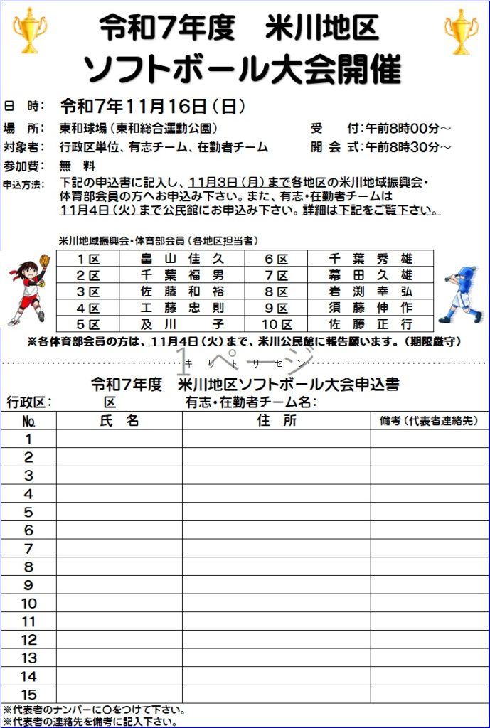 米川地区ソフトボール大会を開催します!下記の内容を確認いただき、お申込み下さい。