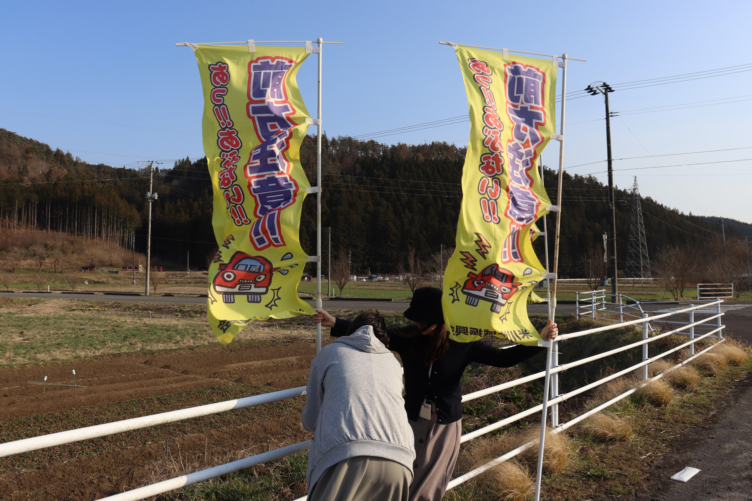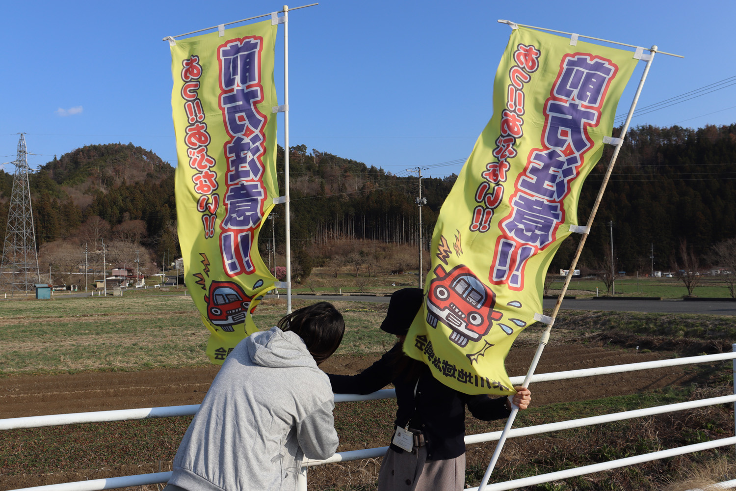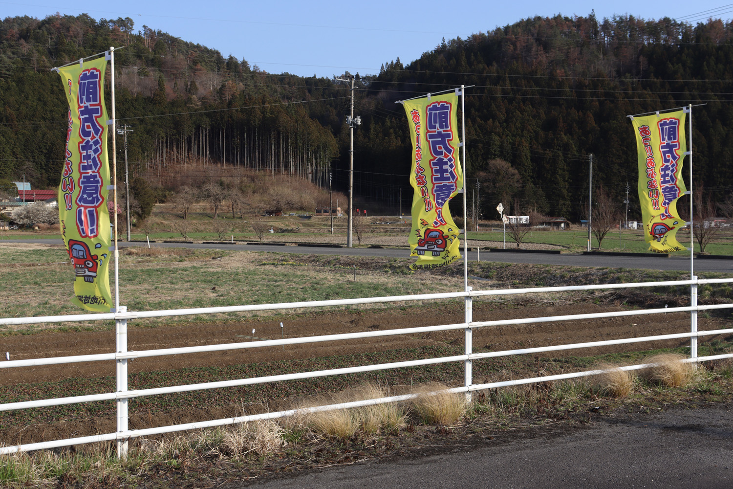 4月6日(月)から15日(水)までの10日間は「春の交通安全運動」期間です🚗この期間に合わせて、米川地区のバイパス沿いに交通事故防止を呼びかけるのぼり旗を設置しました🏴ドライバーの皆さま、一人ひとりの心がけが安全につながります。無事故・無違反で、思いやりのある運転をお願いいたします🙇