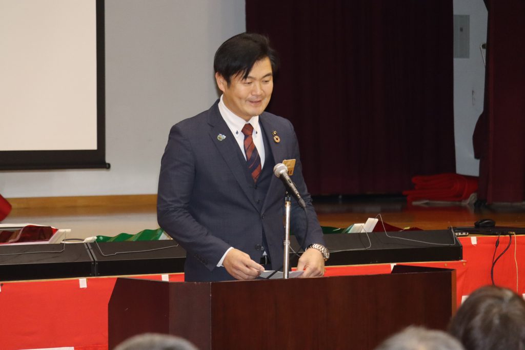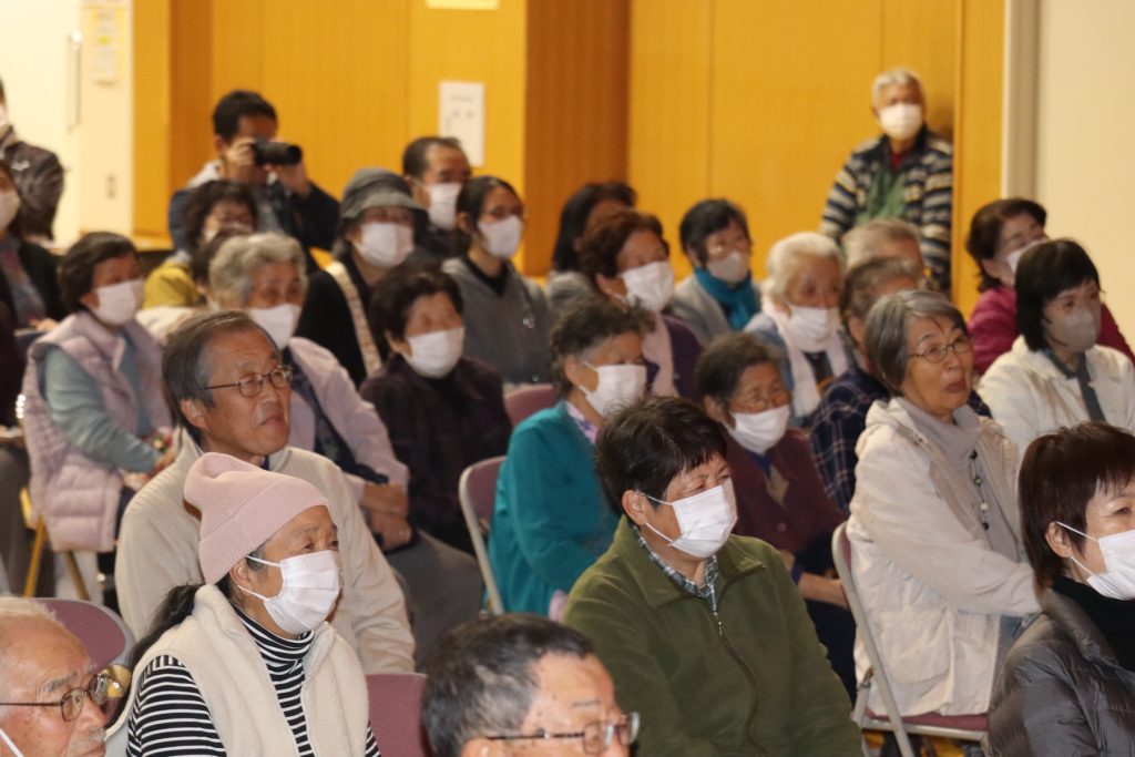 を講演していただきました。開会行事は米川地域振興会の千葉会長の挨拶に続き、登米市長や登米市議会議員にご祝辞をいただきました。第二部は、落語家 六華亭遊花 氏が出演し