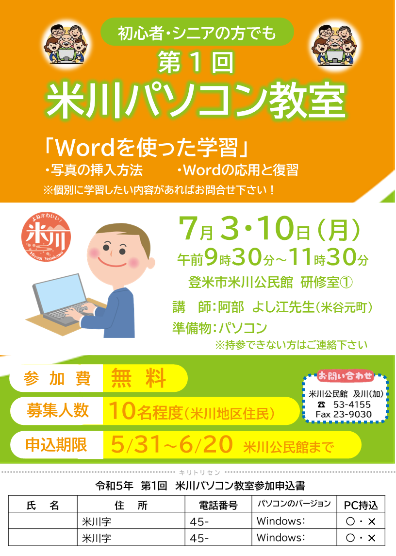 💻第1回 米川パソコン教室 参加者募集💻